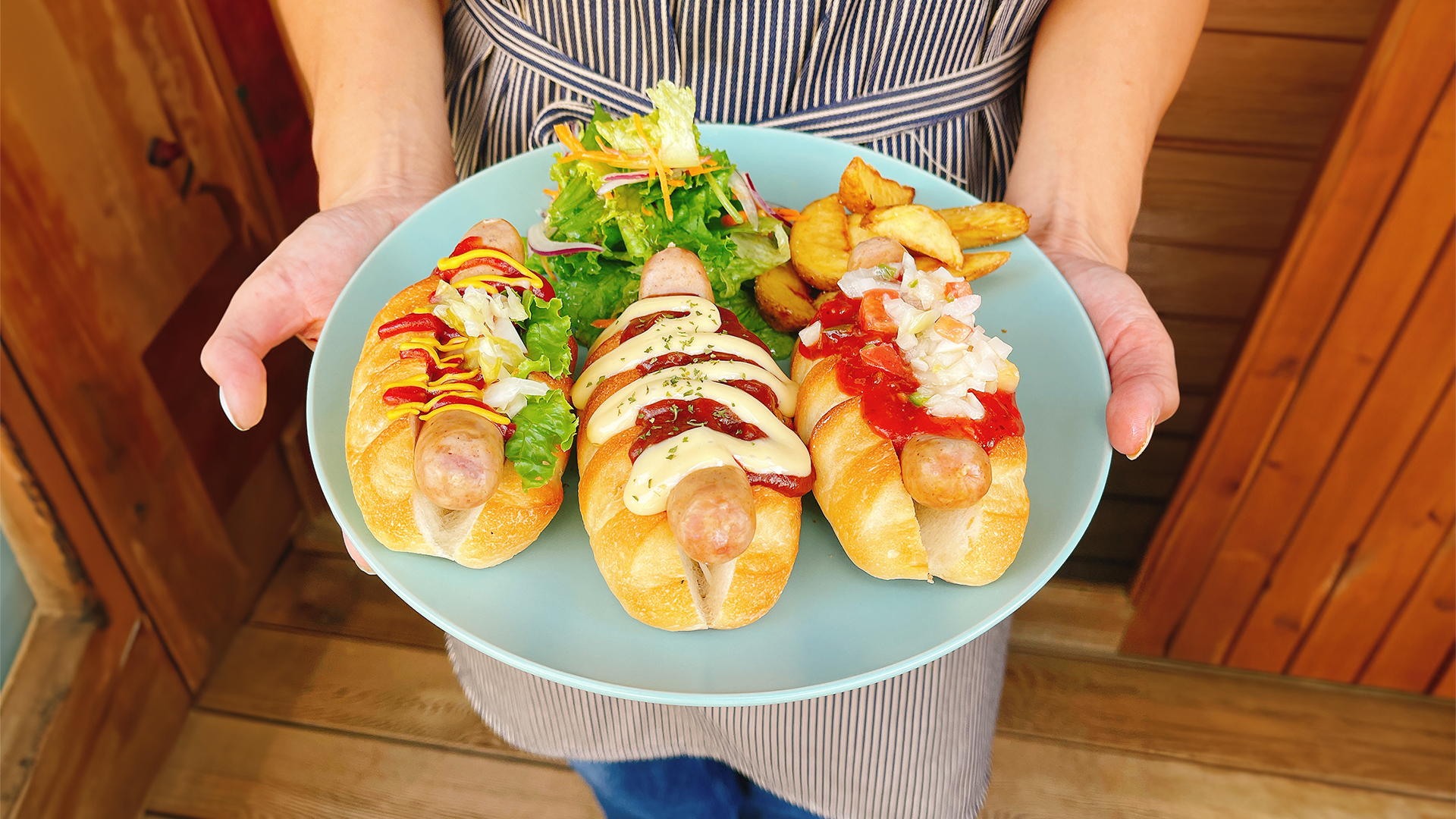 ホットドッグはご注文を受けてから一つひとつ丁寧に焼き上げ、